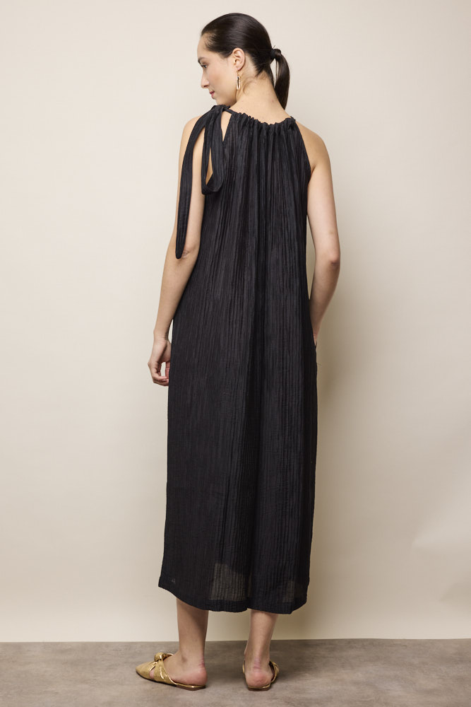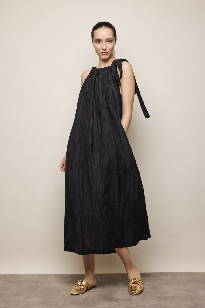 Art Knot Pleated Dress in Black