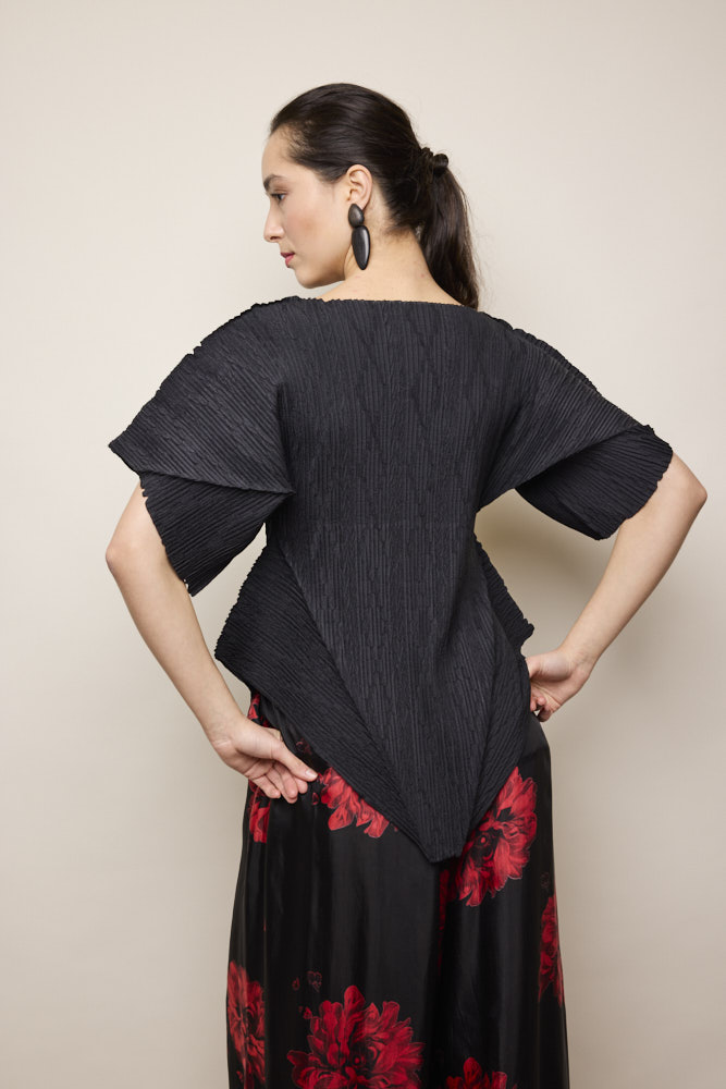 Assyemtrical Pleated Top in Black