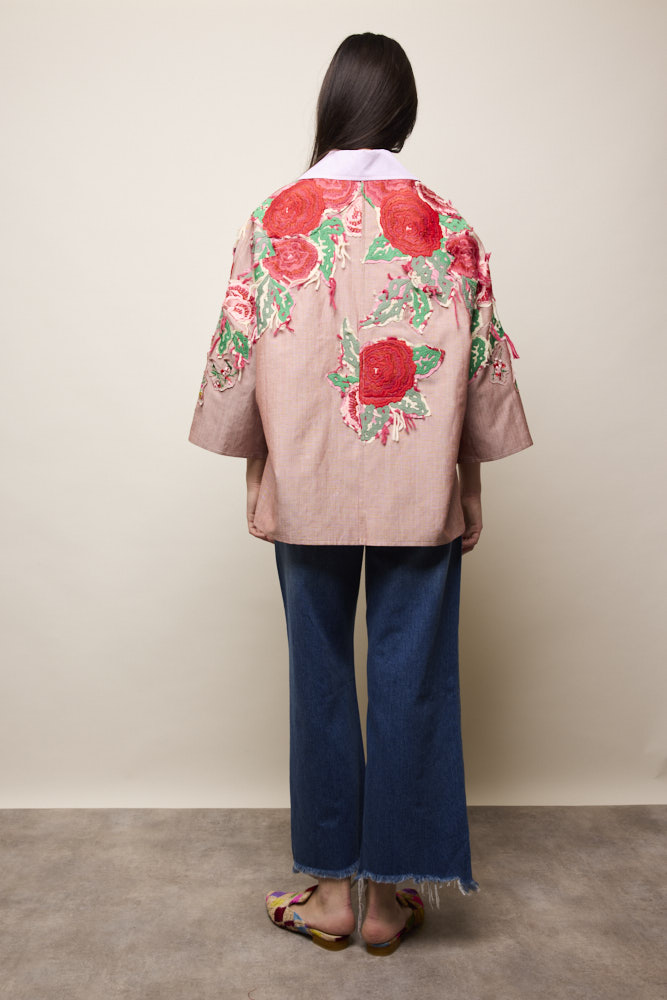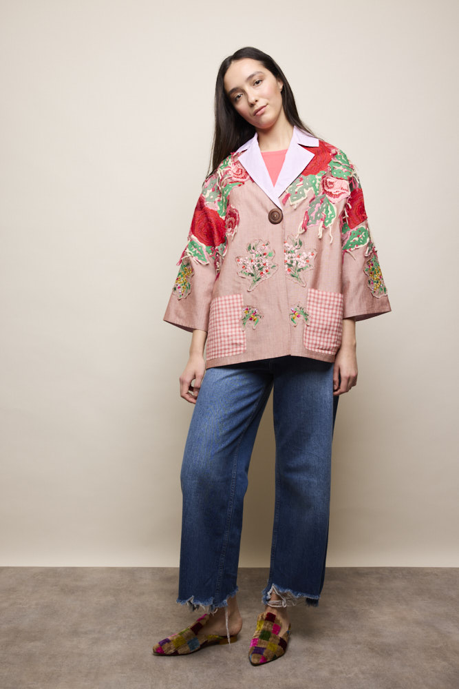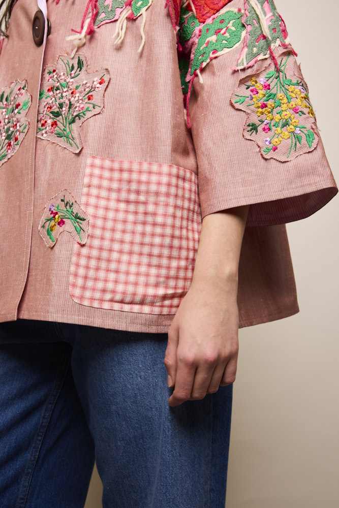 Patchwork Embroidered Jacket in Coral Pink Mix