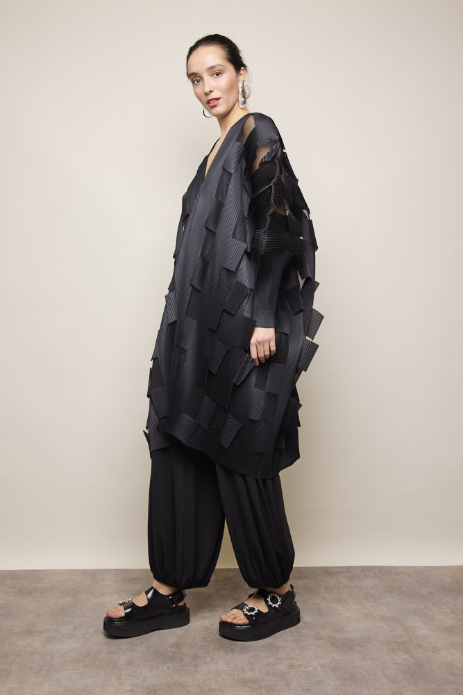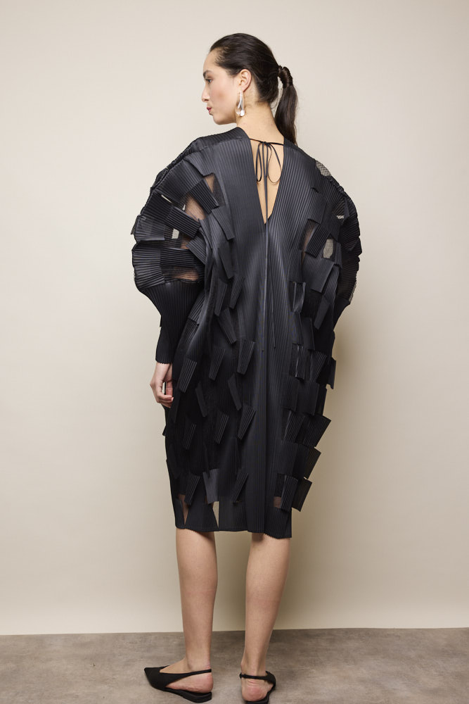 Patchwork Pleated Dress in Black