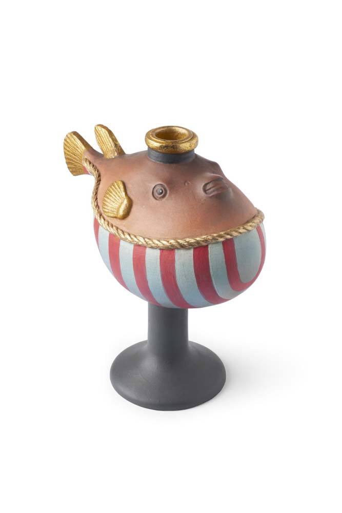 Pufferfish Candle Holder in Blue & Red